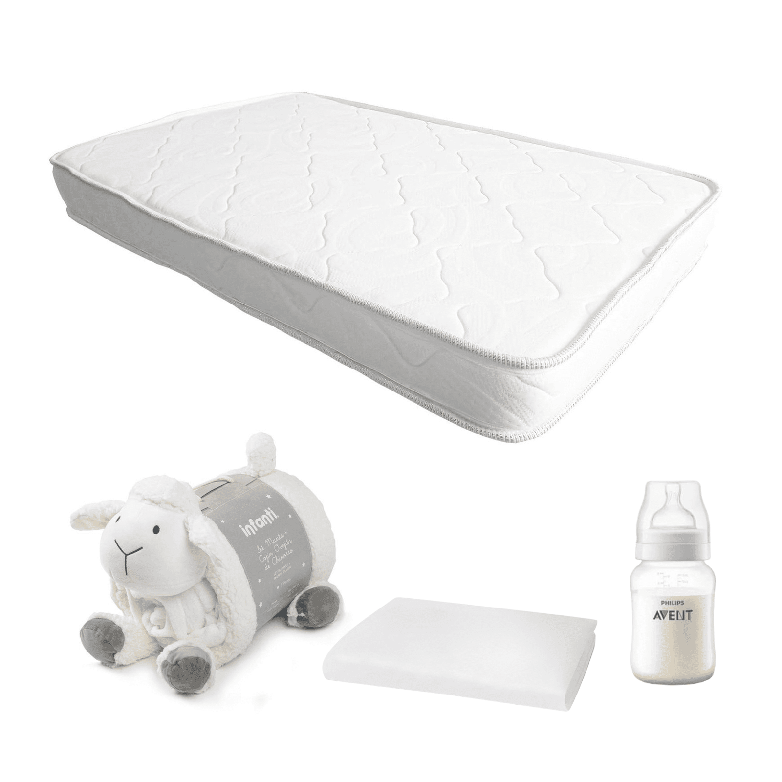 Colchón de cuna Espuma 107x67cm Protector, manta oveja y regalo