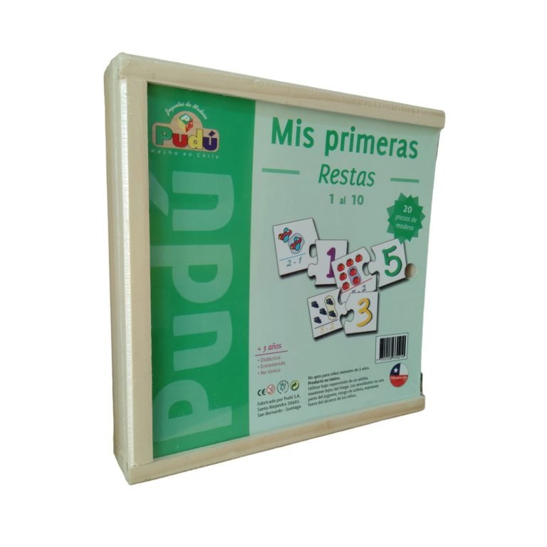 Juego de asociación matemático para ejercitar la operación de la resta a través del ejercicio de asociación de cantidad representada con imágenes, obteniendo resultados numéricos. Estimula el acercamiento a los números y sus primeras operaciones matemáticas. Edad: + 3 años. Medidas: 20 x 20 x 4 cm