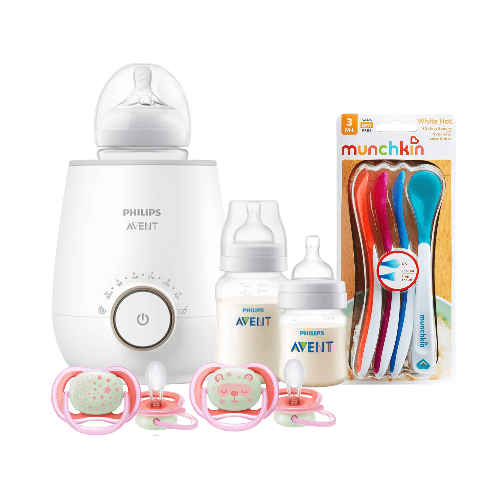Pack Calentador Avent-Mamaderas 125,260 ml – Cucharas sensibles- Chupetes 6-18 meses