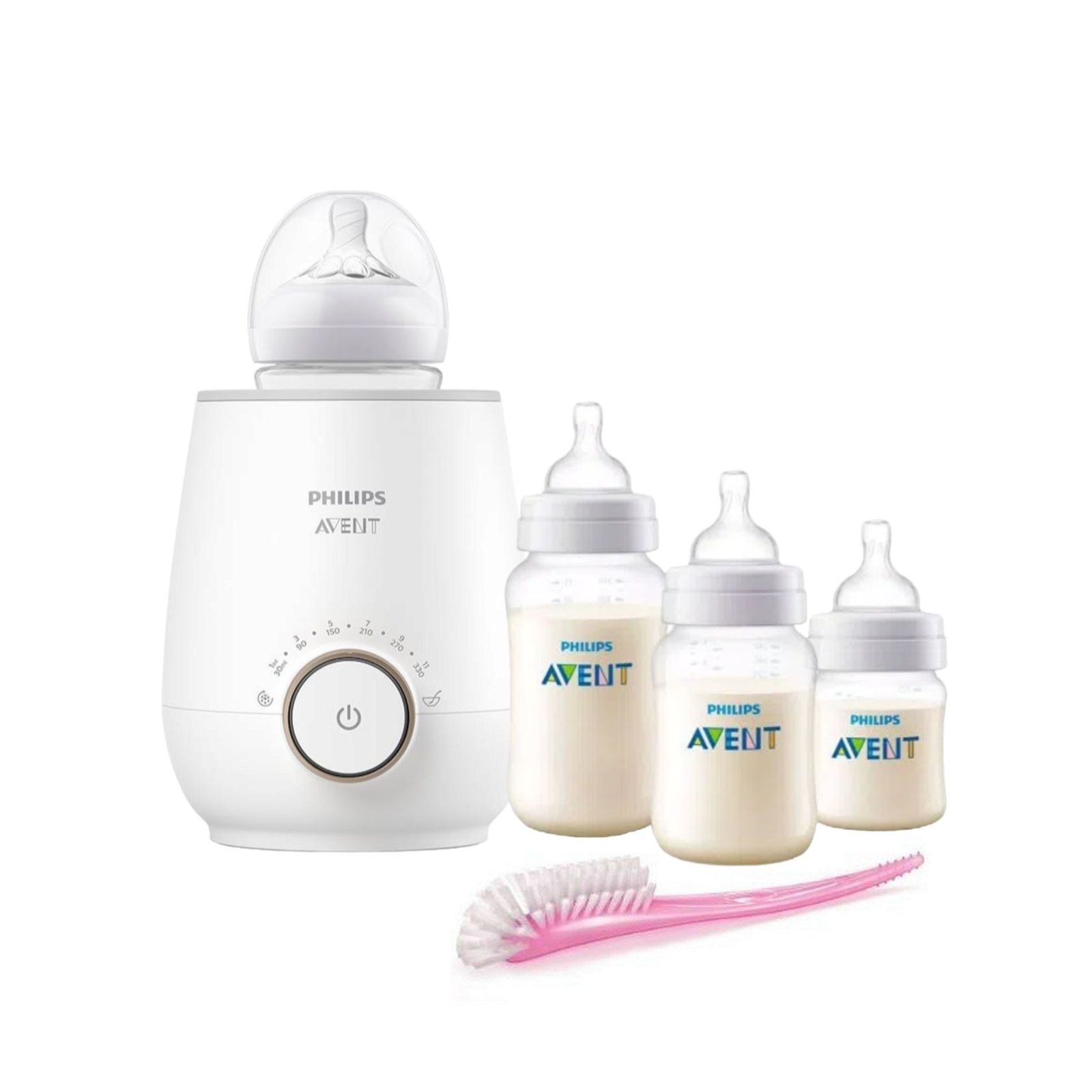 Set Calentador mas 3  mamaderas  anti colic y cepillo higienizador Rosado