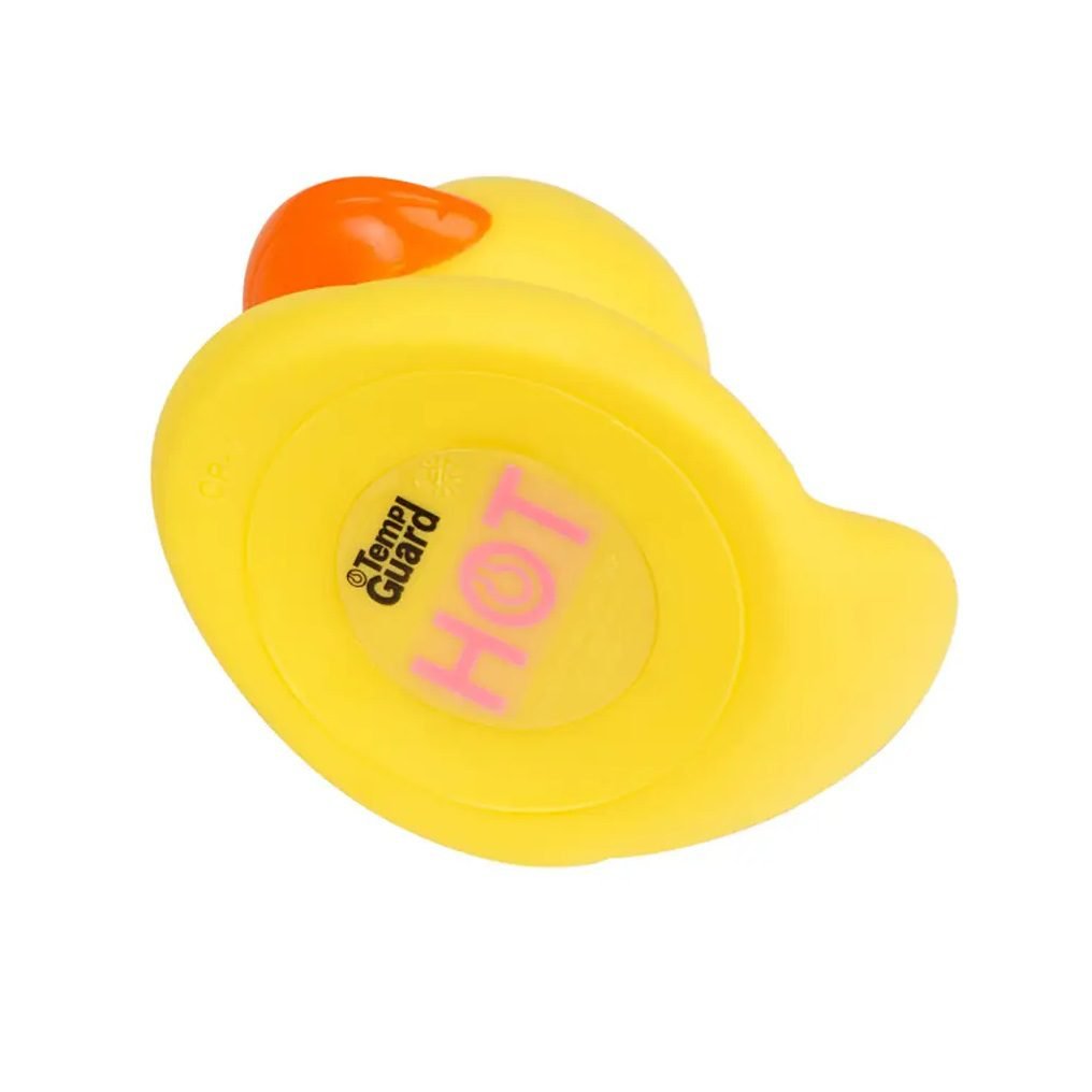El patito cuenta con un indicador de temperatura en su pancita, la que cambia de color cuando el agua está demasiado caliente.